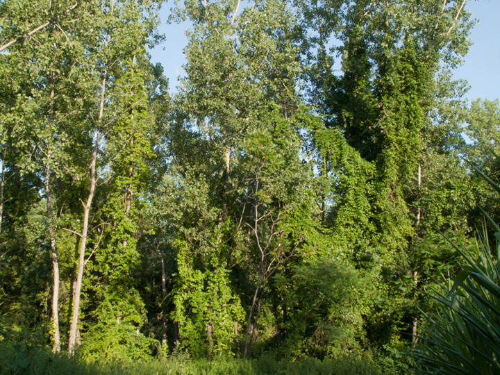 Oriental Bittersweet is choking the tall Cottonwoods along the river.