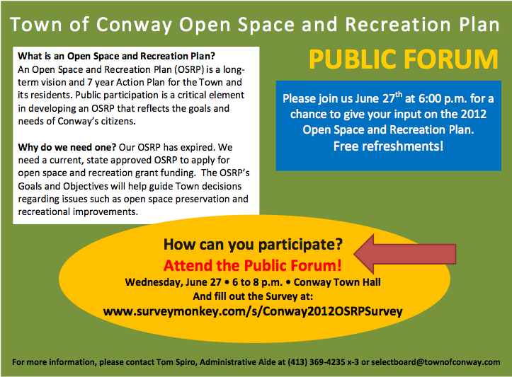 PUBLIC FORUM: Town of Conway Open Space and Recreation Plan